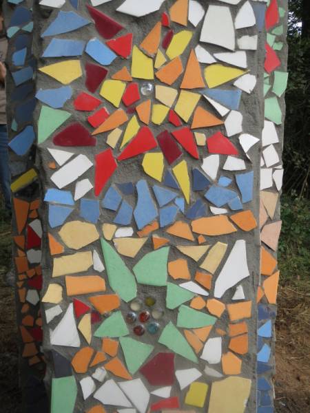 | Material | 3 Betonsäulen, Fliesenmosaike |
